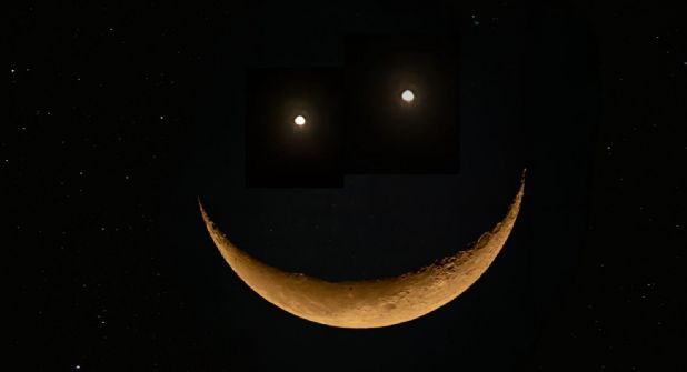 La ‘Luna con cara sonriente’ es una alineación especial de la Luna creciente con Venus y Saturno, creando una imagen en la que el cielo parece sonreír.