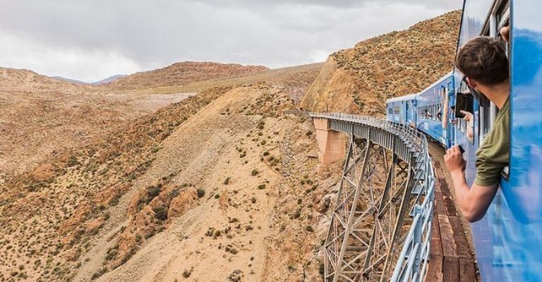 Este recorrido de tres horas a través de paisajes montañosos es una de las mejores maneras de explorar el sur del continente, los pasajeros disfrutan de una experiencia internacional en un entorno inigualable.