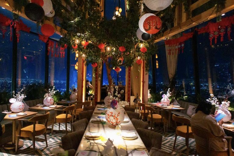 Terraza con vista panorámica a Paseo de la Reforma, ubicada dentro del hotel Ritz-Carlton, ideal para disfrutar de la Marcha del Orgullo, el tipo de comida que sirven es asiática y cuenta con gran variedad de drinks.
