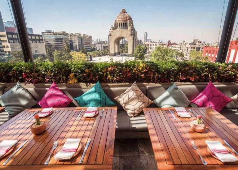 Esta es una de las terrazas más bonitas con una vista increíble al Monumento de la Revolución y otros lugares de la CDMX, sirven platillos mexicanos con barra de carnes y mariscos, con una amplia coctelería.