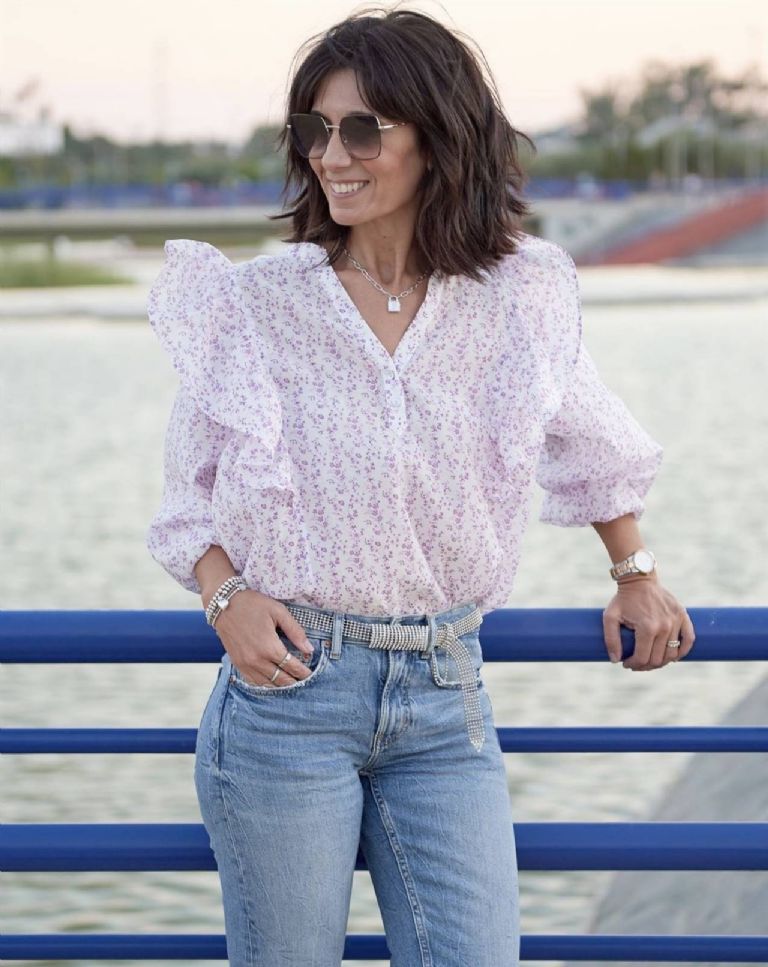 La primavera es ideal para eventos familiares al aire libre. Para estas ocasiones, elige blusas boho transparentes en colores suaves como rosa o lila. Combínalas con jeans acampanados y sandalias de tacón para un toque de elegancia o con zuecos de suela plana para mayor comodidad.