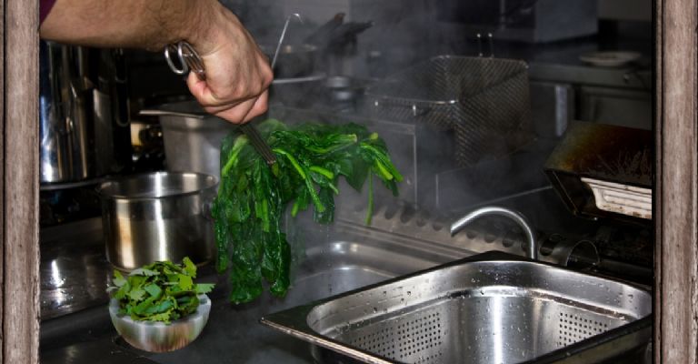 - Transfiere rápidamente el cilantro al recipiente con agua y hielo para detener la cocción.
