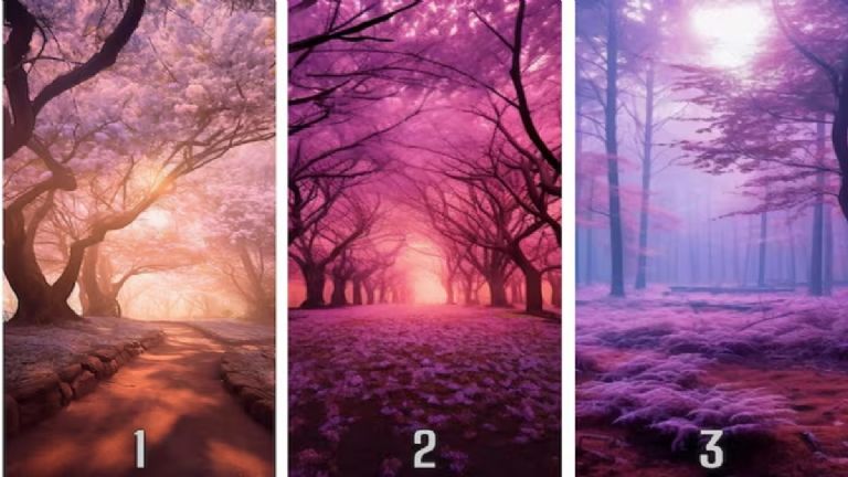 Elige uno de los tres bosques rosados que aparecen en la imagen a continuación. Cada uno de ellos revela aspectos únicos de tu vida pasada según el test visual. Observa atentamente y selecciona el que más te llame la atención para conocer tu posible pasado.